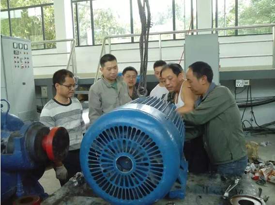 (圖為技術人員正在維護保養(yǎng)中壓泵房3#供水機組)