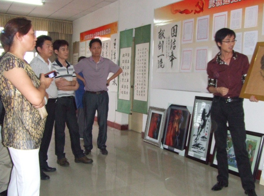 展出的書法、繪畫作品中有古意悠然、意境深遠(yuǎn)的傳統(tǒng)中國古典文學(xué)和毛澤東詩詞,名言警句;有筆觸細(xì)膩、生動(dòng)傳情的人物寫真和田園風(fēng)光,有色彩濃烈、構(gòu)圖新穎的抽象水彩畫;書法作品中有渾然古樸的篆隸,有工整秀麗的楷書,有揮灑自如的行草。