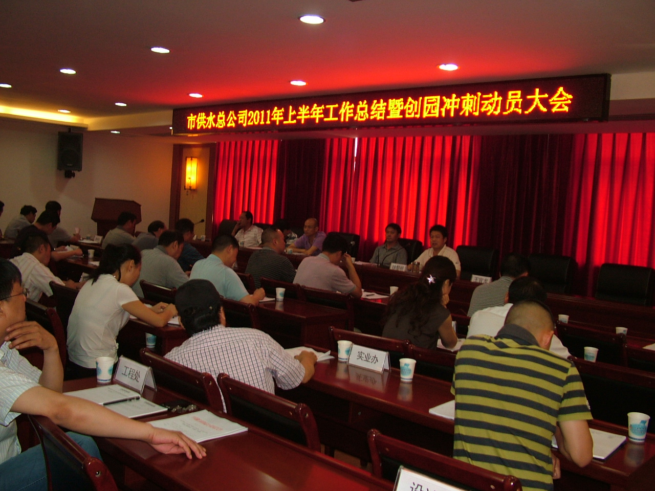 7月6日,市供水總公司在六樓會(huì)議室召開2011年上半年工作總結(jié)暨創(chuàng)園沖刺動(dòng)員大會(huì)。公司中層以上干部和全體機(jī)關(guān)人員參加會(huì)議,會(huì)議由黨委書記、副總經(jīng)理陳永根主持,會(huì)議內(nèi)容豐富而緊湊。黨群辦主任馬兆芳傳達(dá)了住建委創(chuàng)園沖刺動(dòng)員大會(huì)精神;陳書記部署了創(chuàng)建國(guó)家園林城市工作和人大評(píng)議工作;副總經(jīng)理郭林舫部署了安全生產(chǎn)工作;黨委副書記、工會(huì)主席徐黎明傳達(dá)了綜合整治會(huì)議精神;總經(jīng)理陳衛(wèi)國(guó)對(duì)上半年工作作了總結(jié),對(duì)下半年工作作了安排,傳達(dá)了市委從嚴(yán)管理干部的意見精神,對(duì)公司創(chuàng)優(yōu)發(fā)展環(huán)境,整治“庸懶散”專項(xiàng)治理活動(dòng)進(jìn)行了動(dòng)員安排,要求全體干部職工提振精神、腳踏實(shí)地、創(chuàng)先爭(zhēng)優(yōu)、統(tǒng)籌兼顧,為出色完成全年目標(biāo)任務(wù)和各項(xiàng)重點(diǎn)工作,推動(dòng)供水工作上新臺(tái)階而努力奮斗!