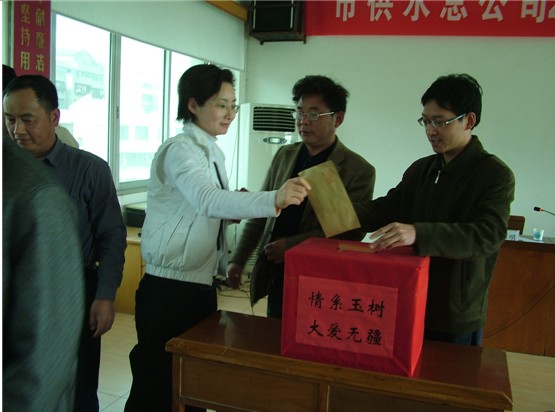 4月26日,荊門市供水總公司舉行“情系玉樹 大愛無疆“捐款活動(dòng),供水職工慷慨解囊、捐款踴躍,短短的時(shí)間,共募得善款18170元,圖為捐款現(xiàn)場場景。