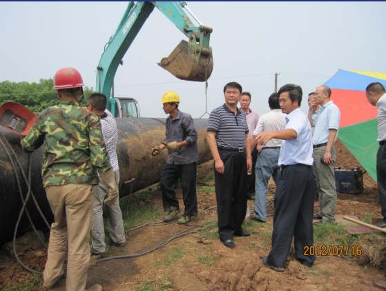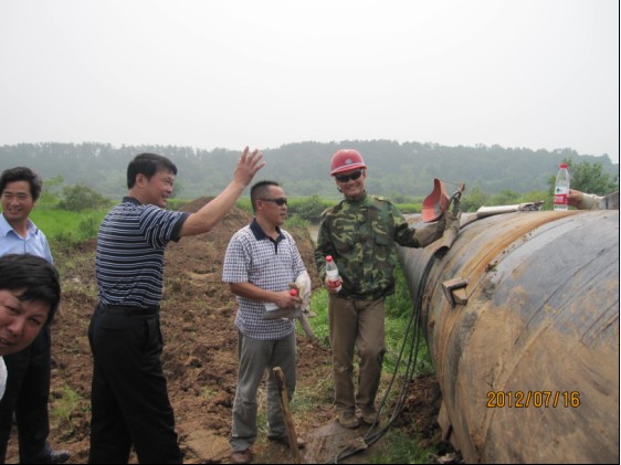 總經(jīng)理陳衛(wèi)國(左四)、黨委書記陳永根(右二)在城區(qū)安全飲水工程施工現(xiàn)場(chǎng)聽取施工負(fù)責(zé)人匯報(bào),要求加快進(jìn)程,確保質(zhì)量,按時(shí)完工,向全市人民交上一份合格答卷。