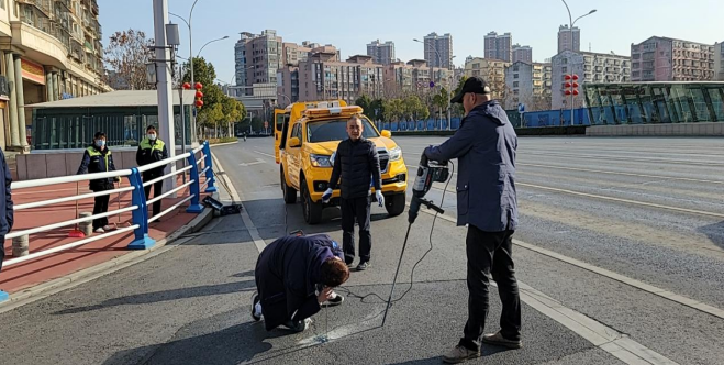 圖為管網(wǎng)運維部周洪濤、靳華東、武化飛在象山大道與漳河大道交叉路口查漏