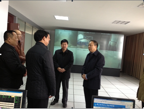131日(正月初一)市委書記萬勇(右二),市委常委、秘書長(zhǎng)周友坤(右三)慰問春節(jié)期間仍然堅(jiān)守在工作崗位的供水員工,圖為在調(diào)度監(jiān)控中心時(shí)的情景。