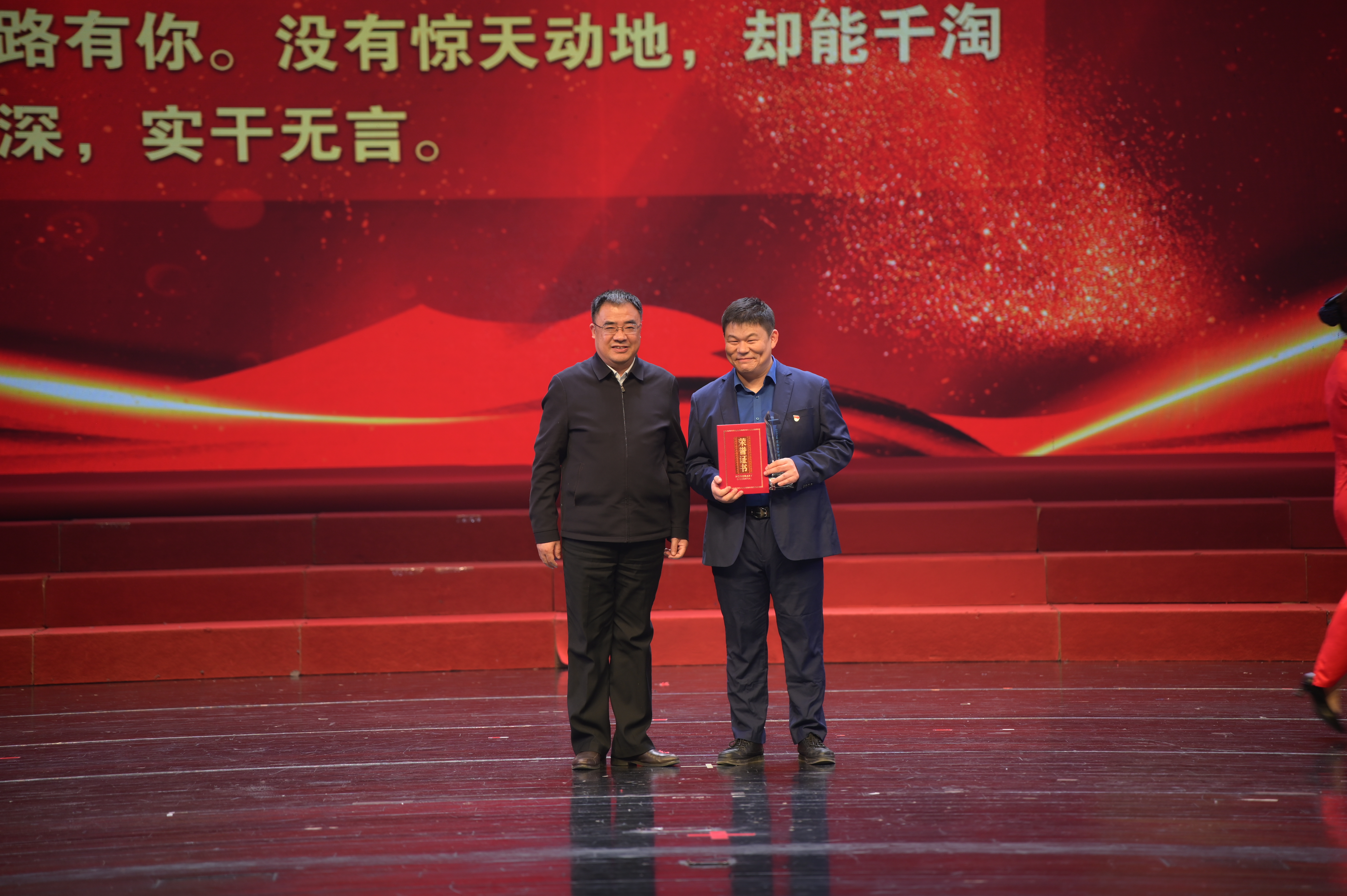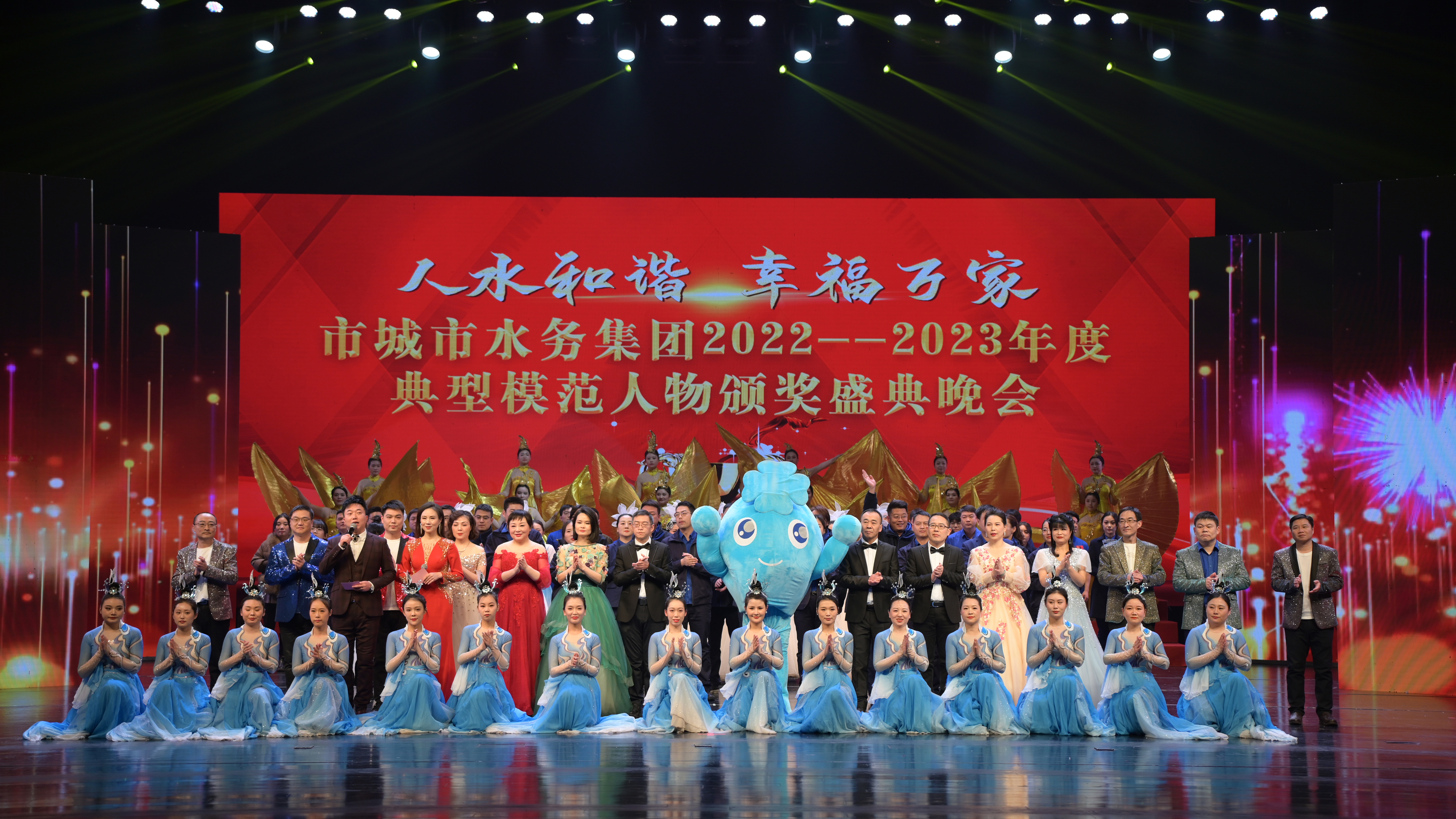 會(huì)后,在荊門劇院舉辦了主題為“人水和諧 幸福萬家”的2022-2023年度典型模范人物頒獎(jiǎng)典禮晚會(huì)。本次晚會(huì)由集團(tuán)高層領(lǐng)導(dǎo)領(lǐng)銜出演,115名干部職工悉數(shù)登場,創(chuàng)歷年參演人數(shù)新高。9個(gè)節(jié)目,涵蓋歌舞、說唱、走秀,類型豐富、互動(dòng)活躍,為大家?guī)硪粓雠c眾不同的視覺盛宴,達(dá)到預(yù)期效果。