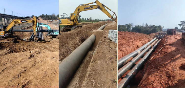 圖為高鐵片區(qū)供水管道施工現(xiàn)場