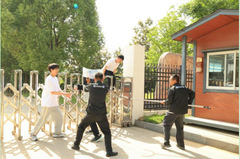演練前,民警在現(xiàn)場示范了鋼叉、盾牌、警棍等防護器械的組合使用方式。隨后,按計劃開展演練。二水廠一名工作人員模擬“非法闖入可疑人員”,翻越廠區(qū)大門進入生產(chǎn)區(qū),安保人員發(fā)現(xiàn)異常立即啟動應急預案,組織人員趕赴現(xiàn)場的同時請求警力支援,最終合力將其制服,并交由警察帶離現(xiàn)場。