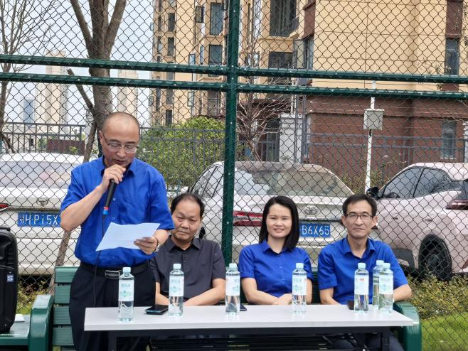 圖為集團(tuán)黨委委員、副總經(jīng)理彭勇致籃球賽開幕辭