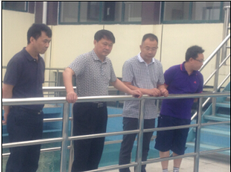 (圖為陳總一行在新泵房查看設(shè)備安裝情況)