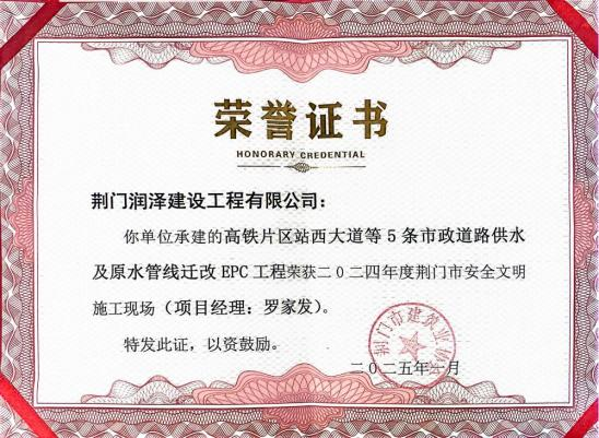 安全生產是建筑企業(yè)的“生命線”。潤澤黨支部創(chuàng)新構建“黨建+安全生產”聯(lián)動機制,設立“黨員安全監(jiān)督崗”,選拔5名經驗豐富的黨員擔任專職巡查員,組建“安全紅袖章”行動隊,常態(tài)化開展施工現(xiàn)場“拉網式”隱患排查。從腳手架搭設到臨時用電規(guī)范,從機械運行到工人防護,黨員們用“鐵腳板”丈量安全底線。2025年1-6月,排查隱患26項,整改率100%,助力公司在荊門市第二自來水廠改擴建工程、高鐵片區(qū)站西大道等5條市政道路供水及原水管線遷改EPC工程中多次榮獲“荊門市安全文明施工現(xiàn)場”稱號,真正讓“零事故”目標落地生根。