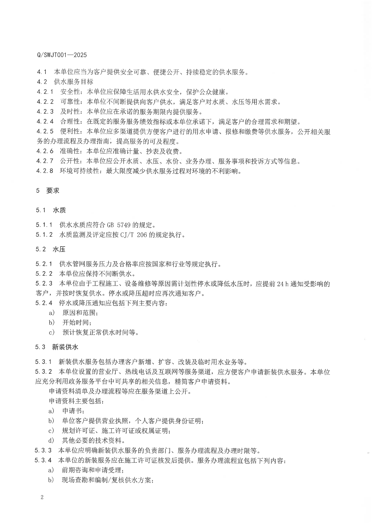 荊門水務(wù)集團企業(yè)標準——供水服務(wù)