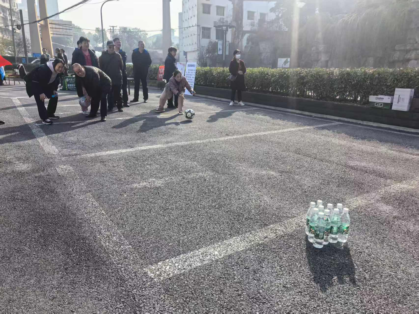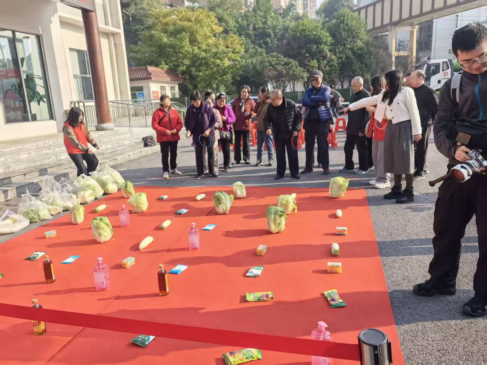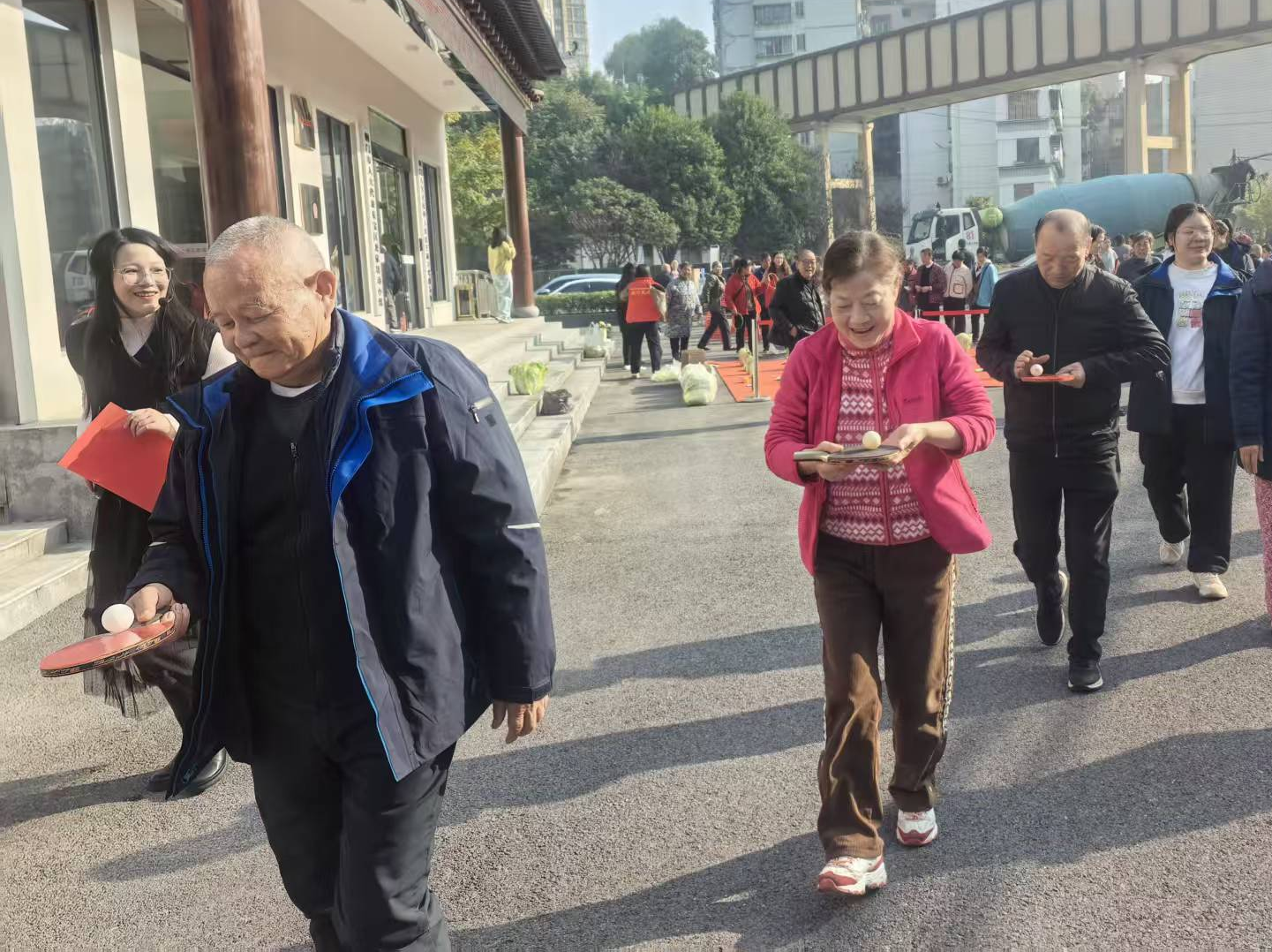 趣味保齡球項目中,老人們瞄準(zhǔn)塑料瓶陣滾球,擊倒瓶子時的歡呼聲此起彼伏;歡樂套圈前,大家瞄準(zhǔn)蔬菜、油鹽醬醋等生活物資投擲,有人接連套中獎品,開心得像個孩子;球拍托球健步走環(huán)節(jié),老人們小心翼翼托球前行,現(xiàn)場滿是歡聲笑語。
