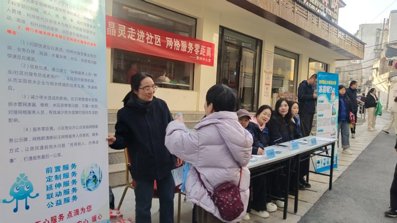 11月26日,荊門水務(wù)集團在塔影社區(qū)開展“水晶靈·網(wǎng)格服務(wù)零距離”主題活動,圍繞“水晶靈”服務(wù)品牌推廣、網(wǎng)格化服務(wù)介紹及供水設(shè)施防凍保暖等核心內(nèi)容,為居民送上全方位的用水服務(wù)。