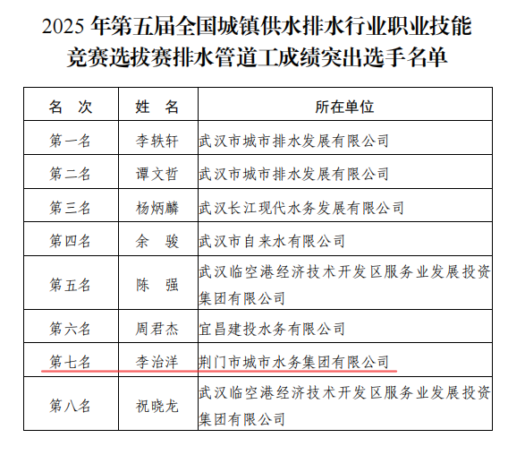 近日,荊門水務(wù)集團成功獲評第五屆全國城鎮(zhèn)供水排水行業(yè)職業(yè)技能競賽湖北省選拔賽道德風(fēng)尚獎。集團參賽選手不負(fù)眾望,取得佳績。詠泉公司付傳艷、余怡康榮獲個人優(yōu)秀獎,排水公司李治洋獲得第七名。