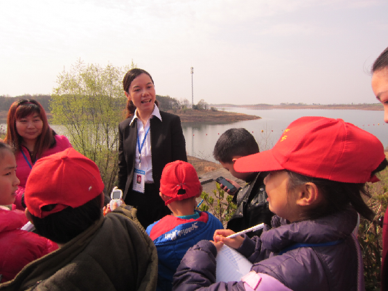 適逢雨后的一個(gè)難得的好晴天,小記者們分乘兩輛客車來到荊門市二水廠。市二水廠掩映在一片花木扶疏中,空氣格外清新,還有幾架小飛機(jī)飛臨上空,小記者們異常興奮和雀躍。荊門市供水總公司為每位小記者準(zhǔn)備了一份紀(jì)念品一個(gè)筆記本和制水工藝流程卡片,讓他們記錄下所見所聞所想,書寫出清新文字。在供水公司2名講解員阿姨帶領(lǐng)下,小記者們先后參觀了二水廠取水頭、深井泵房、V型濾池、清水池等制水環(huán)節(jié),講解員作了細(xì)致講解。通過參觀和問答,近距離觀察漳河,小記者們直觀感受了一滴飲用水的凈化旅程,增強(qiáng)了節(jié)約用水、保護(hù)水源意識(shí)。