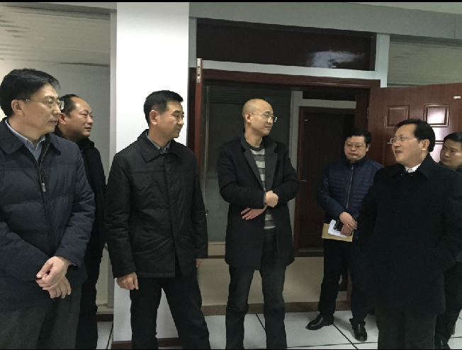 1月29日下午,副市長王良新(左一)、政協(xié)副主席舒行飚(右二)等領(lǐng)導(dǎo)在市住建委黨委書記、主任楊劍(左三)、公司黨委書記、總經(jīng)理陳永根(左四)陪同下親切看望慰問春節(jié)期間仍然堅守崗位的供水員工。圖為在調(diào)度監(jiān)控中心時的情景。