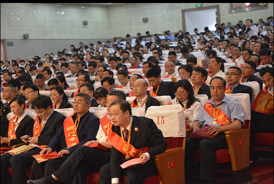 荊門(mén)市勞動(dòng)模范、供水總公司黨委書(shū)記、總經(jīng)理陳永根(二排右三)在會(huì)議現(xiàn)場(chǎng)