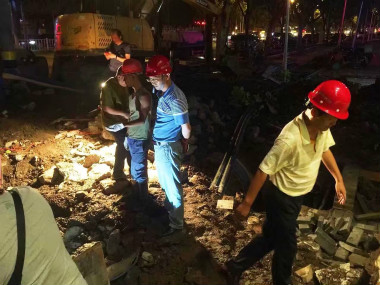 為配合道路改造,象山大道天鵝路至三眼橋DN1200新裝管道并網(wǎng)碰頭施工正連夜緊張進行。為了盡量降低停水對市民帶來的影響,特意優(yōu)化施工方案,安排在今晚21時至明日凌晨6時進行。市供水總公司黨委書記、總經(jīng)理陳永根,副總經(jīng)理羅家發(fā)來到施工現(xiàn)場靠前指揮,為勞累了一天的施工人員加油。此次施工完成也代表象山大道改造主供水管道工程畫上圓滿句號!辛苦我一人,清泉送萬家,我們正在將搶拼嚴實精神發(fā)揚到底,明晨,一覺醒來,又會有歡快的自來水清澈大家的笑顏。