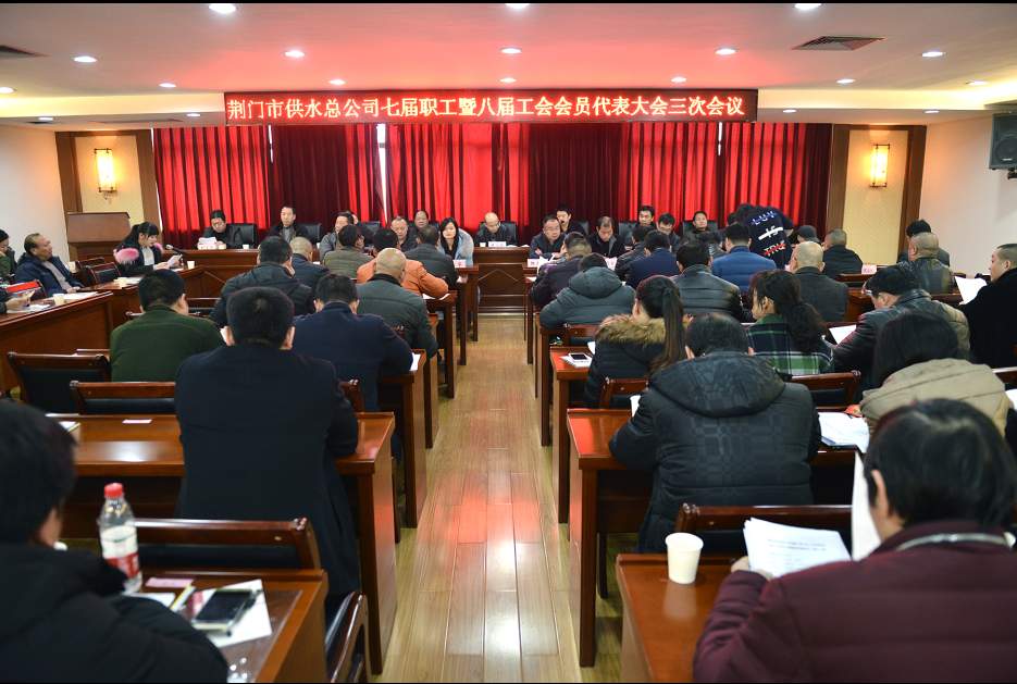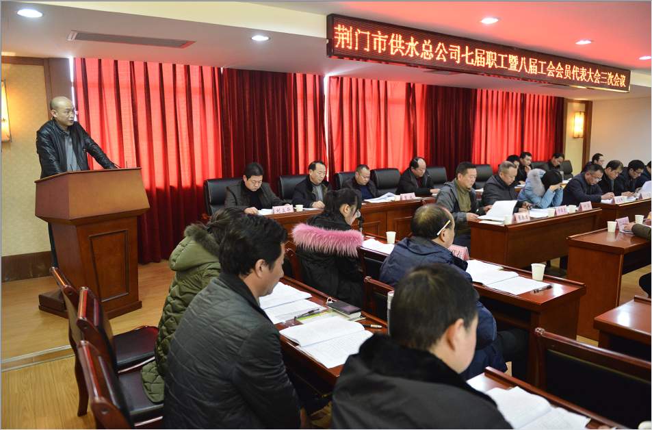 會(huì)議在莊嚴(yán)的國歌聲中開幕。公司黨委書記、總經(jīng)理陳永根作了《2016年度公司工作報(bào)告》,認(rèn)真總結(jié)了2016年度取得的各項(xiàng)成績(jī);供水設(shè)施建設(shè)投資體制理順、5條道路供水管道改遷提前完成、國賓酒店環(huán)評(píng)獲批;管黨治黨高度前所未有、項(xiàng)目建設(shè)力度規(guī)??涨啊⒐局鬏o業(yè)產(chǎn)值連續(xù)五年雙過億,總額首次突破3億元等??陀^分析了當(dāng)前企業(yè)發(fā)展存在的機(jī)會(huì)和挑戰(zhàn),并對(duì)2017年度的工作作出了展望。黨委委員、工會(huì)主席馬兆芳,黨委委員、總會(huì)計(jì)師劉高軼分別作了《2016年度工會(huì)委員會(huì)工作報(bào)告》、《荊門市供水總公司2016年度財(cái)務(wù)預(yù)算執(zhí)行及2017年財(cái)務(wù)預(yù)算草案編制報(bào)告》、《荊門市供水總公司2016年度工會(huì)經(jīng)費(fèi)執(zhí)行及2017年工會(huì)經(jīng)費(fèi)預(yù)算情況報(bào)告》。職工代表提案審查小組組長卞軍虎對(duì)七屆職工暨八屆工會(huì)會(huì)員代表大會(huì)二次會(huì)議職工代表提案辦理情況作了報(bào)告,七屆職工暨八屆工會(huì)會(huì)員代表大會(huì)二次會(huì)議共收到34份職工提案,實(shí)際需要回復(fù)和辦理的提案為32份,已辦結(jié)的有27份,正在落實(shí)的5份,報(bào)告中對(duì)正在落實(shí)的提案進(jìn)行了說明。工會(huì)副主席張春生對(duì)本次會(huì)議征集職工代表提案作了報(bào)告,本次會(huì)議共收到19份提案,其中涉及經(jīng)營管理的5份,技術(shù)改革的1份,教育培訓(xùn)的1份,薪資福利待遇的12份。會(huì)議期間,與會(huì)代表給予六個(gè)報(bào)告充分肯定,圍繞各項(xiàng)工作報(bào)告,進(jìn)行了熱烈討論,提出了許多寶貴的建議和意見。