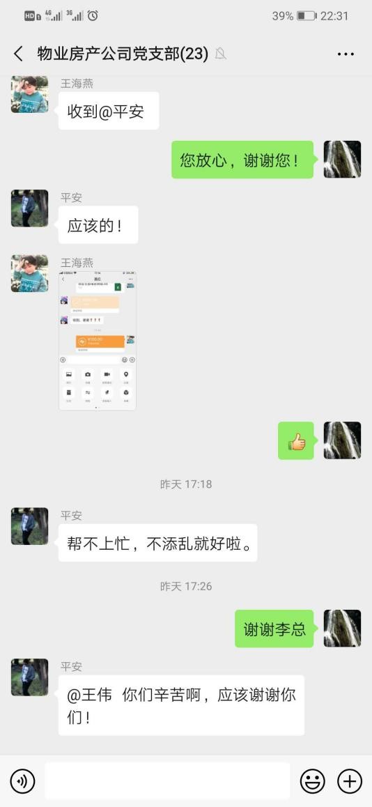 在各支部黨小組微信工作群中開展的捐款中,“這是作為黨員應(yīng)該做的”“為抗擊新冠疫情加油”“我也想貢獻(xiàn)一份力量”“眾人拾柴火焰高”等留言猶如雨后春筍般,比比皆然……一筆筆溫暖人心的愛心捐款,一句句感人肺腑的真情流露,是廣大共產(chǎn)黨員心系群眾、無私奉獻(xiàn)的款款深情,更是他們堅(jiān)守初心、踐行使命的責(zé)任擔(dān)當(dāng)。此前,公司很多黨員干部職工通過參加社區(qū)志愿行動(dòng)、義務(wù)支援醫(yī)廢處置等多項(xiàng)行動(dòng),主動(dòng)投入到這場沒有硝煙的戰(zhàn)爭中,不少黨員同志提前通過荊門市紅十字會(huì)、荊門市慈善總會(huì)等多渠道進(jìn)行了捐款,多名捐款額較大的同志還再三叮囑要求不公開其姓名。