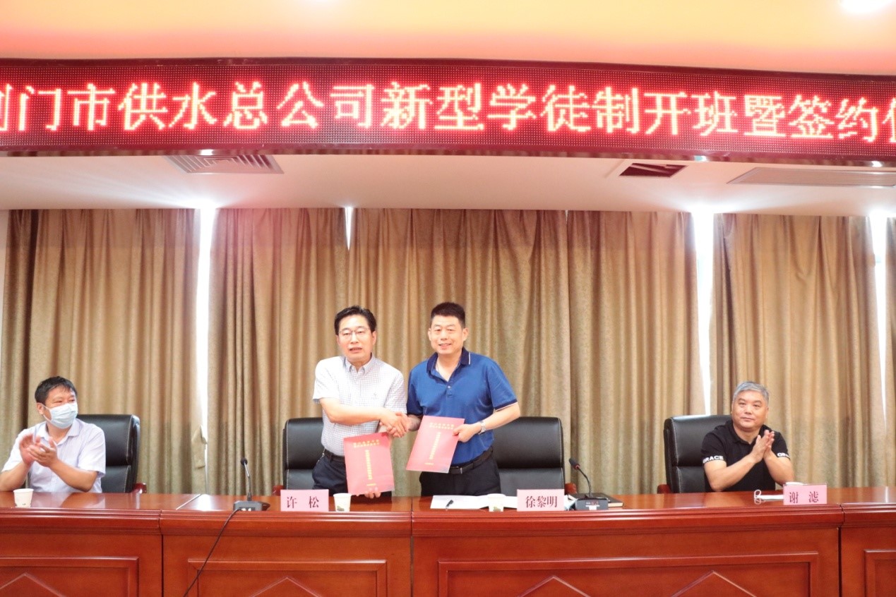 6月10日上午,市供水總公司與荊門技師學(xué)院簽訂《校企合作協(xié)議》《企業(yè)新型學(xué)徒制辦班協(xié)議》,搭建起培養(yǎng)高技能人才培養(yǎng)高速通道,開(kāi)啟訂單培養(yǎng)企業(yè)工匠新模式。簽約完成后舉行了新型學(xué)徒制首期開(kāi)班儀式,校企雙方近40人參加活動(dòng)。